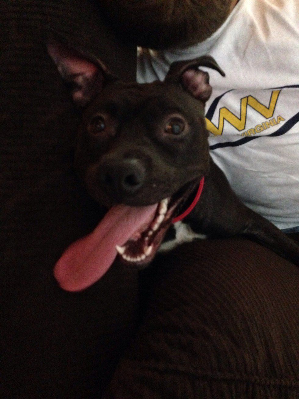 This photo was taken after she decided to run around the living room literally 300 times. If I could include a video of her running through the house just to land on the couch and tumble over, I would. I swear, pit bulls never run out of energy. They could run around for hours and never get tired.