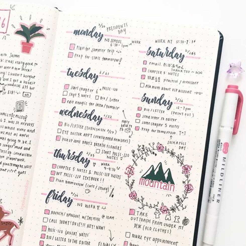Traditional planners keep you to a rigid system, while bullet journals allow you to customize each week to what you're feeling and what will be the most productive for you. Want to try an hourly schedule for classes and appointments? You can do that. Want to just have a running checklist for a week where you're really busy? Go for it. Bullet journals have no rules, so feel free to do whatever the heck suits your fancy.