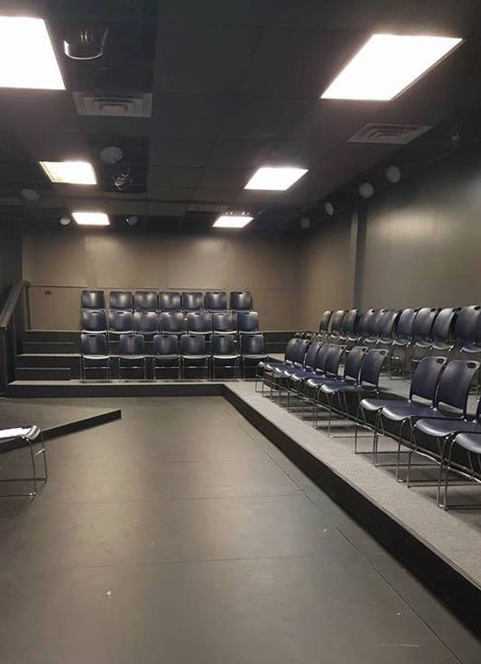Over the Summer our Technical Director, Eric Niece, with the voluntary assistance of several faculty, staff, and students created a new performance space for us. We have a large black box theatre that we use for most main stage shows. However, as the department grew, we saw a need for an additional theatre space. The ALT is short for Associates’ Lab Theatre and it is a small performance area that is perfect for class, improv shows, staged readings, cabarets, student directed shows, and other events of a similar nature. The Theatre Department greatly appreciates the provision of this new space and can’t wait to see what new and exciting ideas students will come up with for the new space.