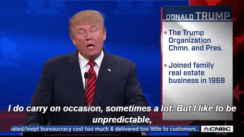 Trump's support for the Constitution can be seen in his fight for Americans to embrace the second amendment. He hopes to allow concealed weapon carrying permits to be valid in all states. When asked how this would effect mass shootings, he claims it's the problems of the people, not an issue with the laws. Furthermore, with Trump's stance there have been no preventative measures proposed to counteract allowing concealed weapons everywhere. This is the only logical thing to happen in response to all the mass shootings and will only prevent more from happening!