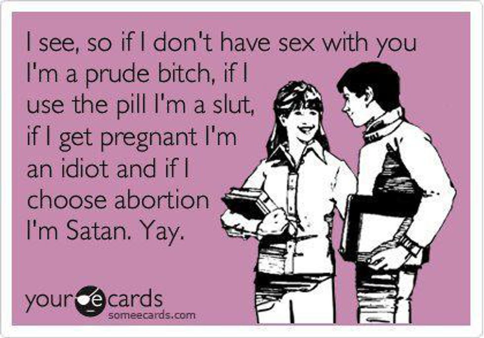 As Jessica Valenti would put it, "He's a stud, she's a slut." It's a terrible double standard. While men are generally praised for engaging in sexual activity and graduating into manhood, women are more often encouraged to hold on to their purity for as long as they can before they are "deflowered." When a man has a lot of sexual partners, he is thought of as a stud. A woman with multiple partners, a slut. Ironically, it does take two people to have sex--many times, a man and a woman. If sex between unmarried people results in a pregnancy, it is commonly the woman who has to carry the emotional burden as people whisper, "She got herself knocked up," while the man gets to run free. The kicker to this is that women receive such contradictory messages when it comes to sex. On one hand, the media is saying, "be sensual, be sexy, be attractive to men," and on the other, society is saying, "Don't have sex unless you want to be branded a whore." This is a pretty archaic notion, but somehow, even in the 21st century, it keeps surfacing.