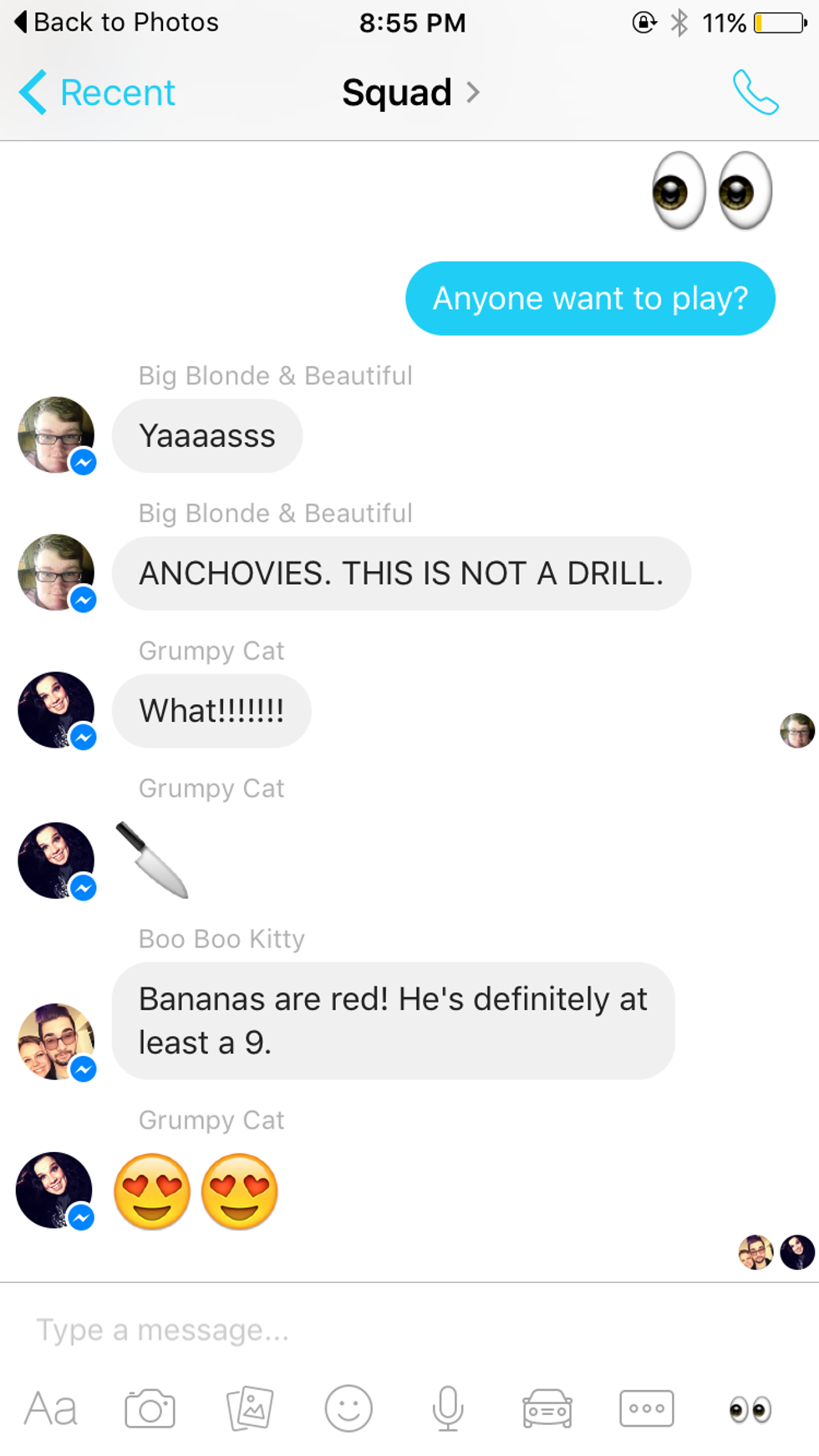 If something pops into your head or you need to talk to your three best friends at one time, the group message is the simplest way to send it as quickly as you can. If you need to meet up or make plans, put it in the group chat! Everyone will chime in when they're free and when they're having squad withdrawals.