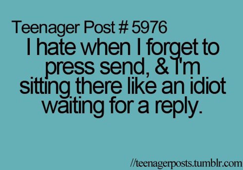 Most of the time I look back at conversations in my phone and I wonder why the conversation ended so randomly. I then realize that it was my fault. There I see my full thought out reply just sitting there waiting to be sent. I actually do this a lot without even knowing. I feel like everyone has done this at least once in their life.