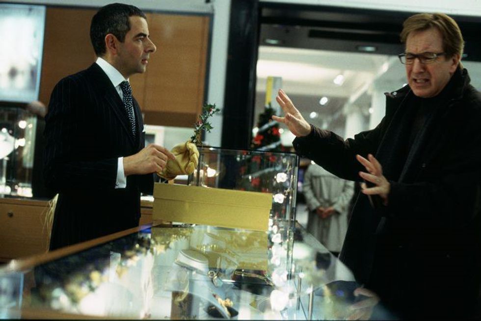 I don’t care how much you love Snape, nothing will ever beat the scene in which Alan Rickman tries to buy jewelry from Rowan Atkinson. In it, Rickman’s character Harry is attempting to buy a necklace for his girlfriend Mia (Heike Makatsch) without being caught by his wife. Atkinson’s character Rufus is the salesman and wants to wrap it as extravagantly as possible. The more decorations Rufus adds, the more stressed Harry gets, culminating in Harry almost getting caught by his wife at the end of a hilarious scene.
