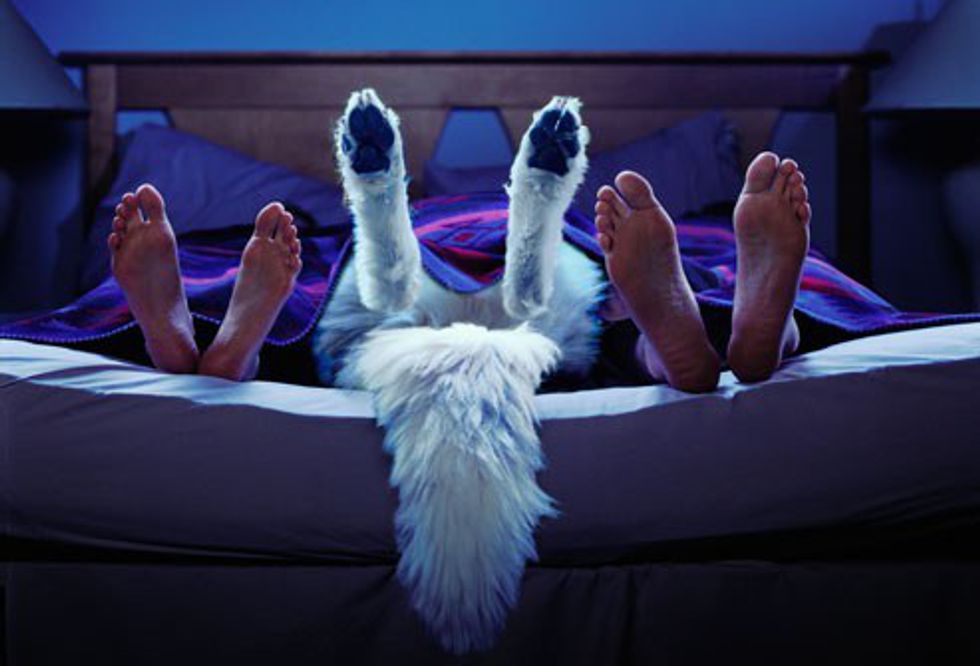 If he or she doesn't like the dog in the bed then they can sleep on the floor, but the dog stays.