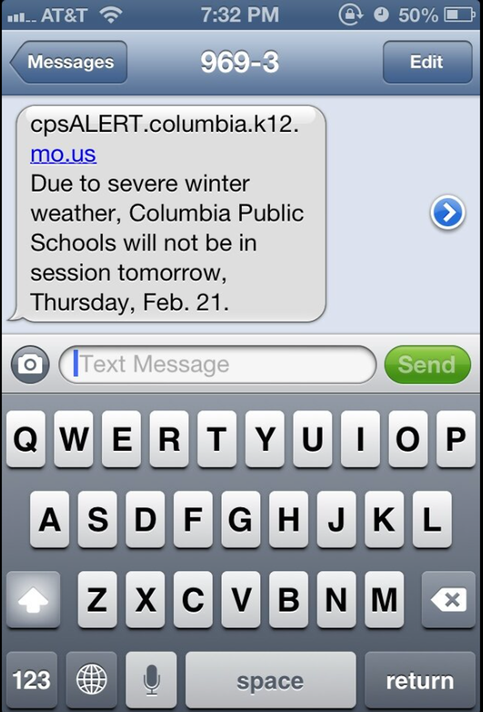 Whether you get this text the night before or at 5 o'clock in the morning, you can't help but be grateful for snow. As a senior, this can almost bring tears to your eyes because now you have an extra day to study for that AP exam.