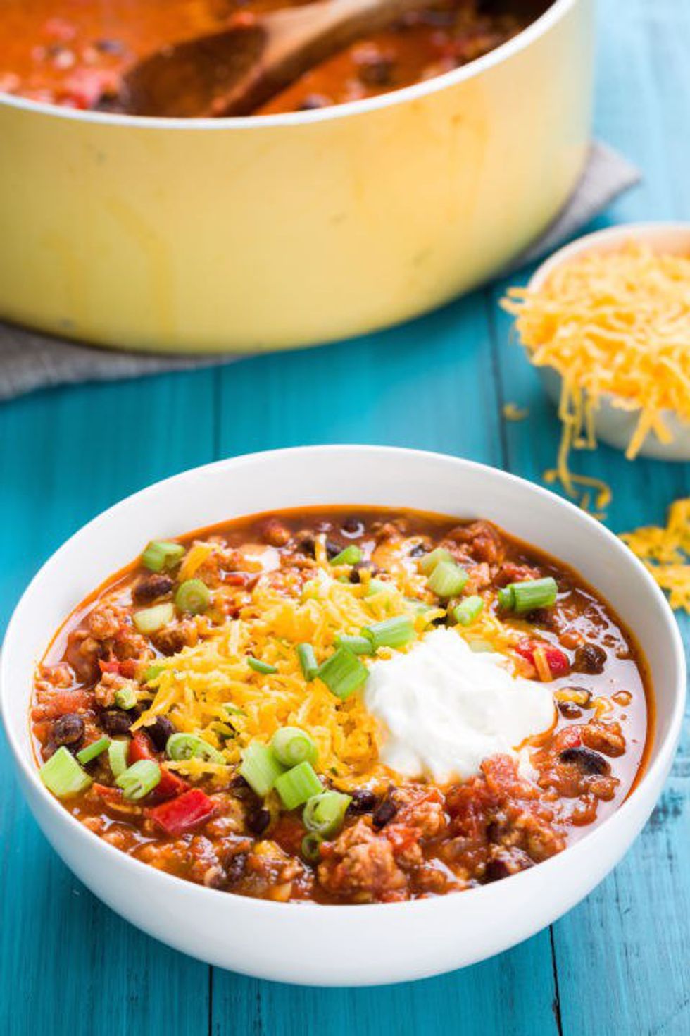 Whether made on the stove top (like the recipe) or in a crockpot, this chili is full of spices to warm you and your home up!