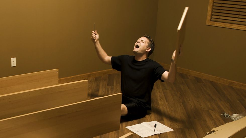 The first target of your anger? The smug little stick figure man who tells you to find a friend with a pencil and to assemble your furniture on a carpet. If this little cartoon were real, I would have definitely punched the positive, can-do smile off his face by now.