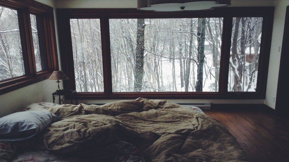 2. Wake up, see the winter wonderland... first step in motion? Sleep in! Ugh, doesn't that feel good? Gather all the blankets in the house and pile up on the couch. Don't forget the hot cocoa or the coffee.