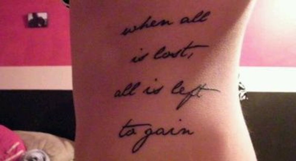 I recently got my first two tattoos, a mantra saying “I am” on my left rib and a semicolon on my right wrist. I got one of them for myself, and one of them with a group of girls who I would trust my life with. The tattoos were painful, even for someone with a high pain tolerance, but afterwards I saw how beautiful they were and the pain seemed to fade away. Here are 7 black line tattoos that could easily become your first tattoo!