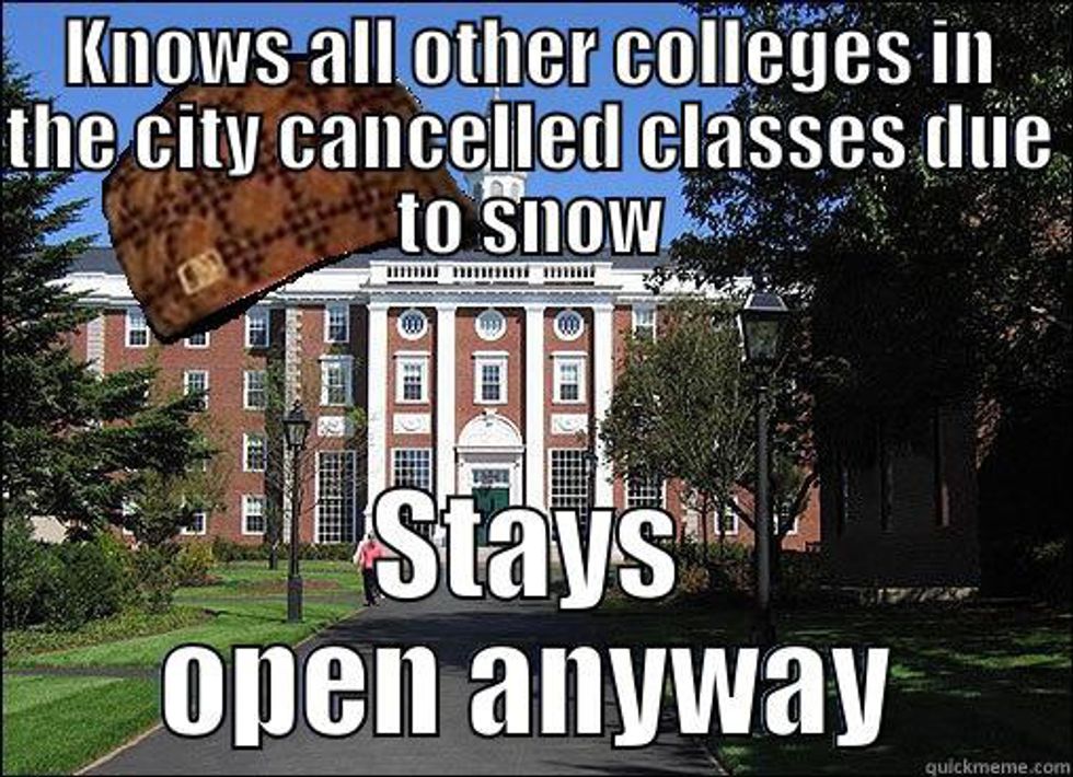 Colleges are notorious for waiting until the last minute to cancel class or sending out the very ominous text or email stating to, “Use your discretion” on whether or not it is safe for you to come to class. Even though you know they probably won’t cancel class with the 2 inches of snow coming in, you still check every news site cancellation list and wake up at 4 a.m. to check your email.