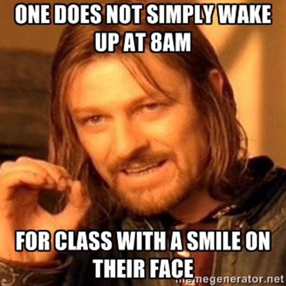 We have all been there at some point in our college career and you can bet your bottom dollar that I didn't schedule an 8 am class because I thought it would be butterflies and rainbows. It never fails that "that one class" you actually need is only available to you in the wee hours of the morning, putting you in the wake of the 8am beast.