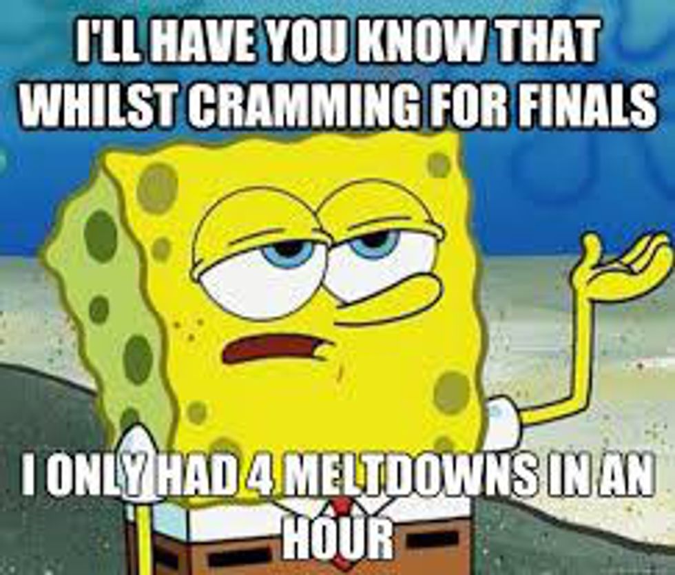 All the stress of finals finally catches up to you and you just breakdown, usually in the middle of the library.