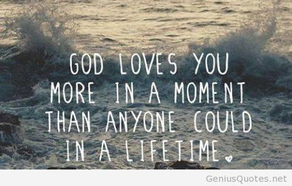 - God loves you more than you will ever know. Even when I did not have a relationship with God, He loved me and pursued me. When Jesus was hanging on the cross, you and I crossed His mind. He did that for you. He did that for me. That is true love.