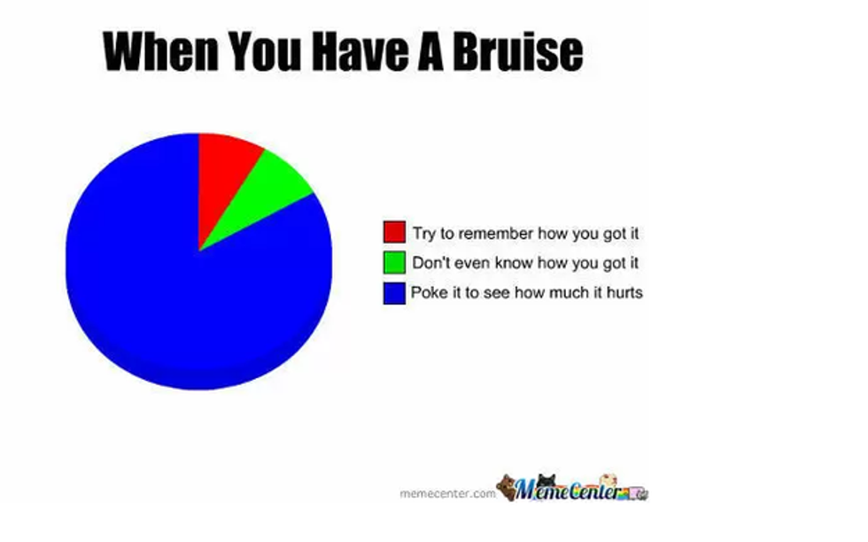 Have you ever looked at a bruise on your arm and think, "how the heck did I get that?". Well, for clumsy people this is a thought we have pretty much every day. As of right now, I have two bruises on my knee, and I have no clue where they came from.