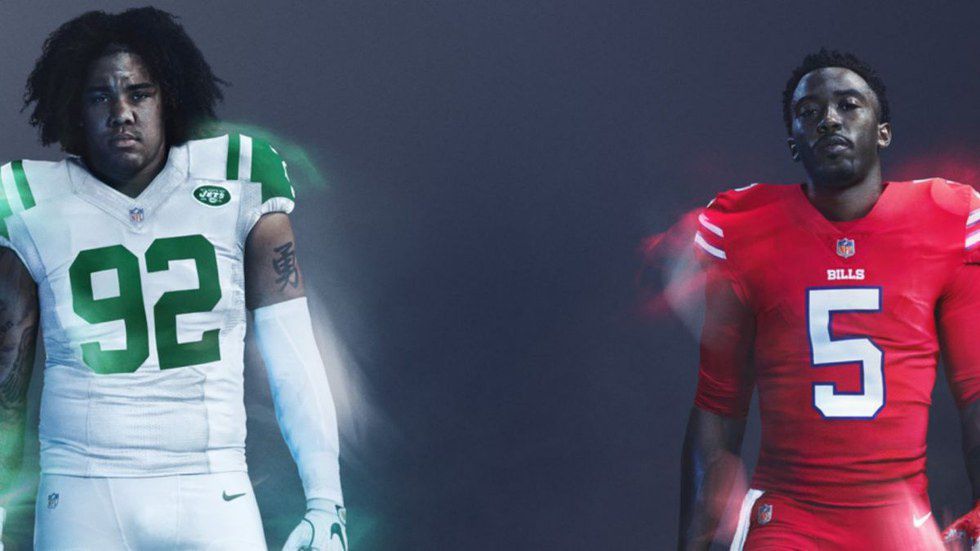 I saved the worst for last. After the "Christmas Bowl" fiasco of the Jets-Bills game last year, the NFL is bringing the Color Rush jerseys back. However, this time around, if you're colorblind you'll be able to see the Bills jersey. Thankfully, the Jets won't wear those eye-soar green jerseys that they did last year--they're sticking to their traditional white away jerseys. I think we can all be thankful for that.