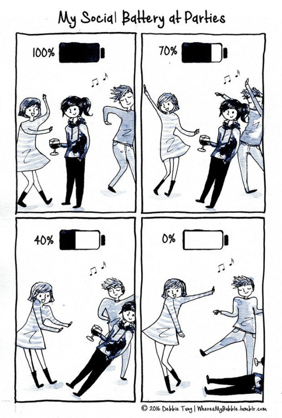 Sometimes we need time to ourselves and we love nothing better than a good night in. Maybe settling down with a good book, movie, maybe time to paint, or just catch up on some work is the perfect night which sounds sad to others, but this is our party and it makes us happy. Know that we don't always enjoy large groups and we are fine with a quiet night in. Also, we might need to recharge. This might sound weird but being social is draining! Like the phone, we need time to recharge after a long day.