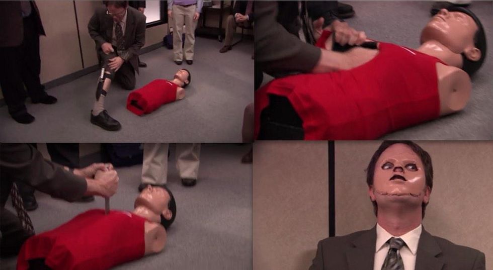 Every health teacher and doctor will teach you how to do CPR to the point where you know the routine by heart, but what about afterward? What if the CPR doesn't work, and you're left with a lifeless body in front of you? That's when you listen to Dwight. According to him, you have to cut out the organs immediately to use for organ donation, and if there isn't a patient in need of an organ around you, just use the organ yourself. After all, two layers of skin are more protective than one. #usefulmedicaltips101