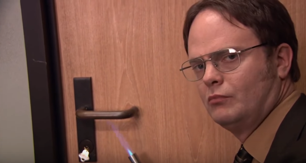 Who wants that boring fire drill where they walk you out in a "single file line" and tell you to "remain calm"? I mean that's so useless cause we ALL know ain't no one going to be leaving all their belongings behind just to follow safety rules. I propose that every building adopt Dwight's superb method. His method takes panic and stress to another level. He doesn't just show you the exits. He fuses the exists shut and starts the fire in the room to bring you face to face with the real deal. Then, it's a game of survival of the fittest with Dwight narrating the entire time. Fun!
