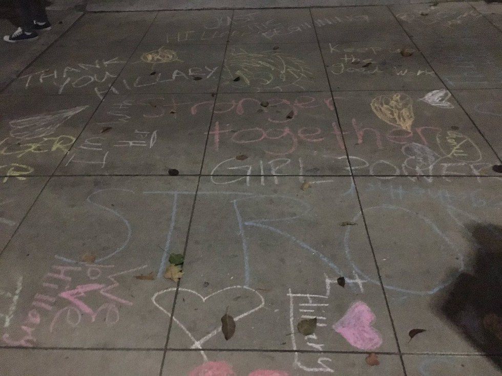 For days and weeks, children and their families continued to chalk the Brooklyn sidewalks with all sorts of messages, all of them thanking Clinton for her service, many of them simply reading "LOVE TRUMPS HATE." Many more left similar signs on the corner of Clinton's street at home in Chappaqua, New York, the week of Thanksgiving.