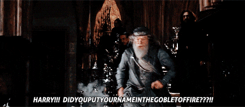 If you're a fan of the books, you knew this was coming. It is expressly stated that Dumbledore asked Harry this question calmly. I don't know about you, but Dumbledore was anything but calm in the movie.