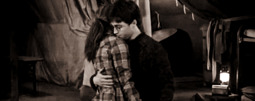 This cute dancing scene did not happen at all in the books. I suspect it was added to fuel the fire of those who wanted Harry to end up with Hermione ... too bad he didn't.