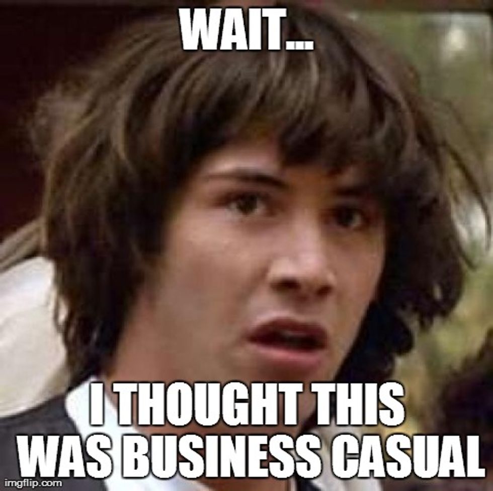 Google business professional dress! For my friends that are men, khakis are not business professional. Make sure your jacket and pants match in order to make an excellent impression! It's never fun to lose points for something as simple as dress.