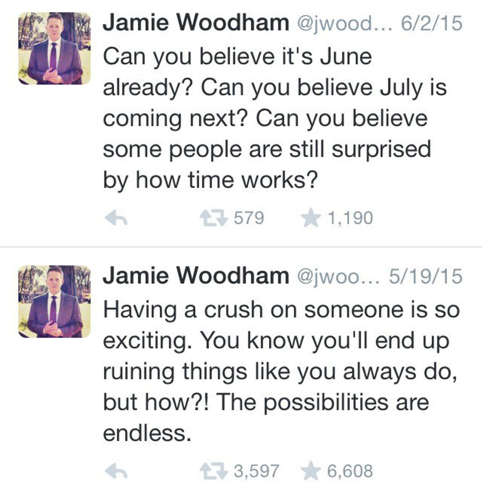 I had never heard of Jamie Woodham but I stumbled upon this comedian's twitter account a few years ago and have been a religious retweeter ever since. His tweets are usually super outlandish which is what makes him so funny.