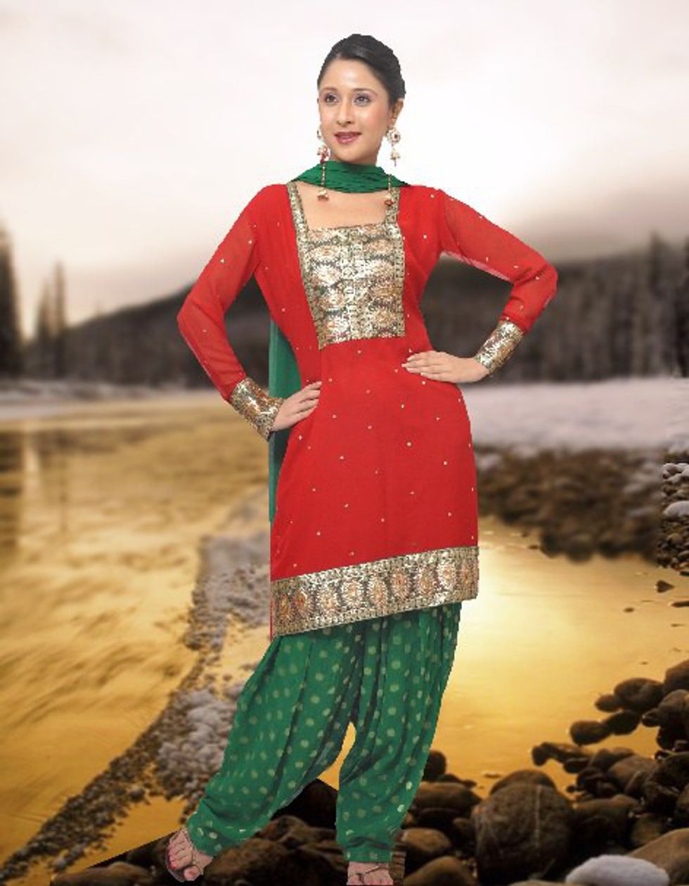 The Anarkali has a long top which looks like a frock with pants which are usually churidars. The name is coined from the legend of the well-known courtesan Anarkali, who was involved in a relationship with the Crown Prince Salim. Anarkalis are another favorite for any festive occasion. They have never appealed to me greatly but they have a great elegance to them which reminds us of a very sophisticated era.