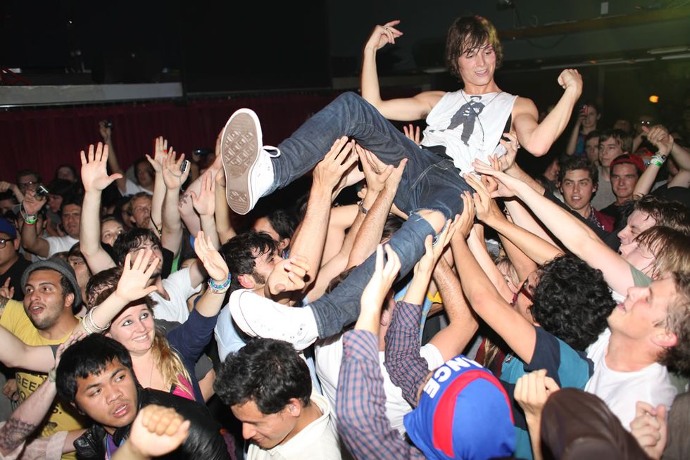 Was that a cartwheel? You bet it was! These wild moshers get so into the music, they forget that there's anyone else in the room. Limbs are flying, elbows and knees out. They jump over each other in a writhing mass. You can almost guarantee that one of these herky-jerkers is going to take his shirt off before the night is over.