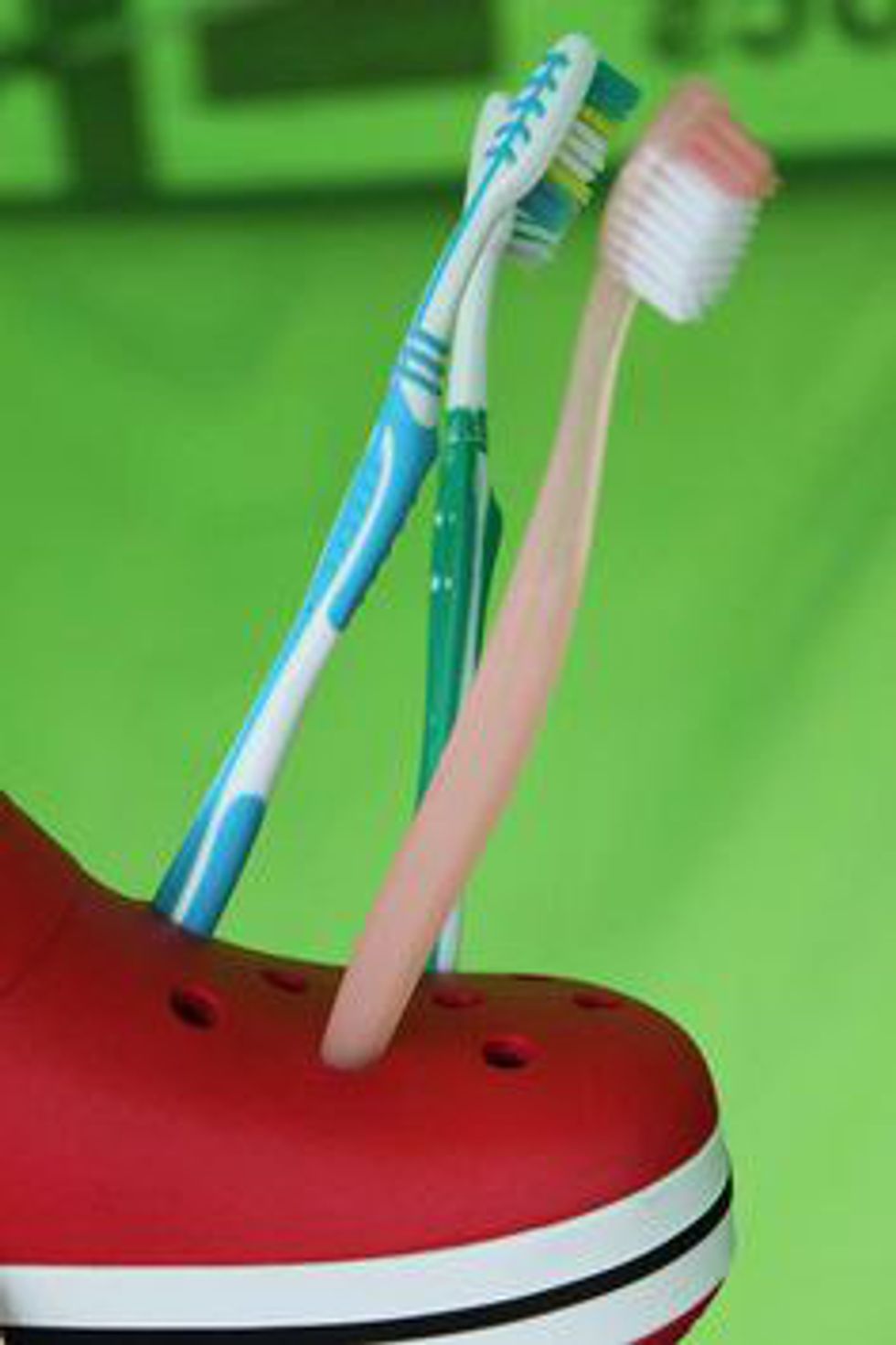 Don't leave your toothbrush laying around the sink picking up germs. Use Crocs to support your toothbrush in an upright position. And why store just one? Crocs have at least seven places to keep all your family's toothbrushes in place.