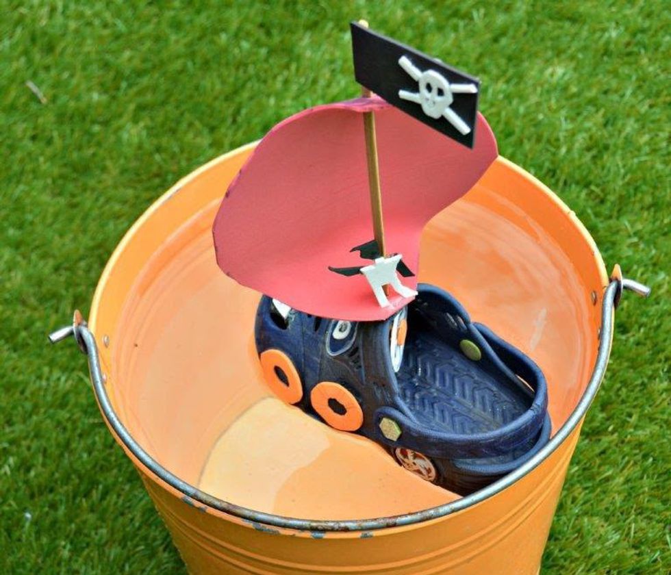 Crocs are light and quite easy to attach other things to and so they're perfect for crafts like this one. Finally your kids can have the boat for their toys to sail off into the water with and you can be sure it will always be with them because it will be on their feet.