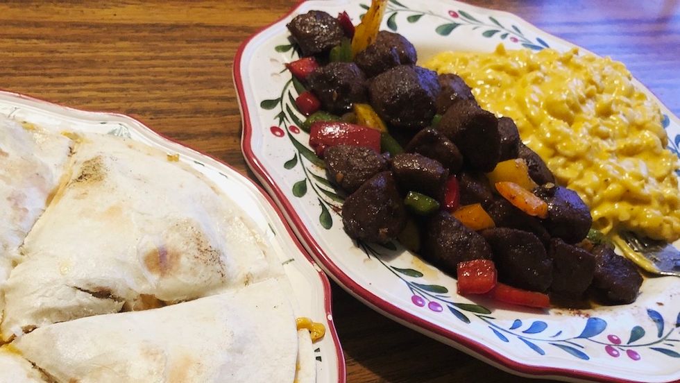 Gardien's beef-less tips taste like steak without the cruelty, and they are amazing with A1 sauce and bell peppers. These steak tips will impress your stubborn dad, grandpa or uncle who thinks you eat leaves for breakfast, lunch and dinner.