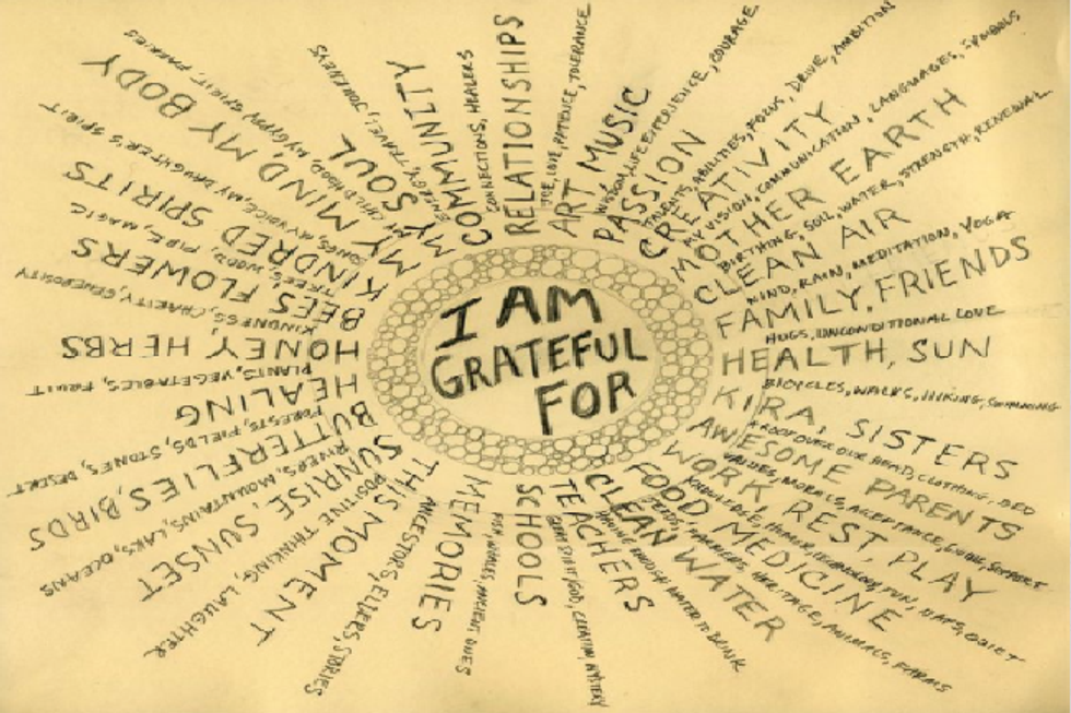 Write a list of all the things you are grateful for in your life. Be specific. For example, don't just say "my friends." Why are you grateful for each friend in particular? What do they do for you? Write about people, experiences, places, conversations, gifts, things anyone has done for you, things you have done for yourself...