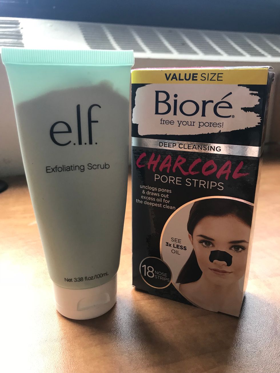 2. Exfoliation: e.l.f Exfoliating Scrub & Biore Charcoal Pore Strip