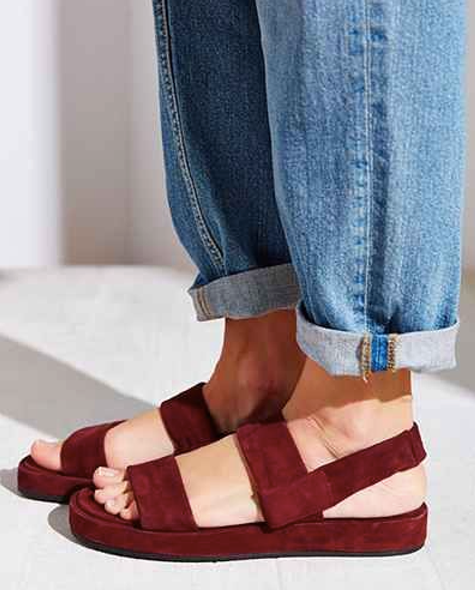 Birkenstocks, Tevas, Chacos, you name it! Anything that makes your feet look wider is really what you’re looking for.