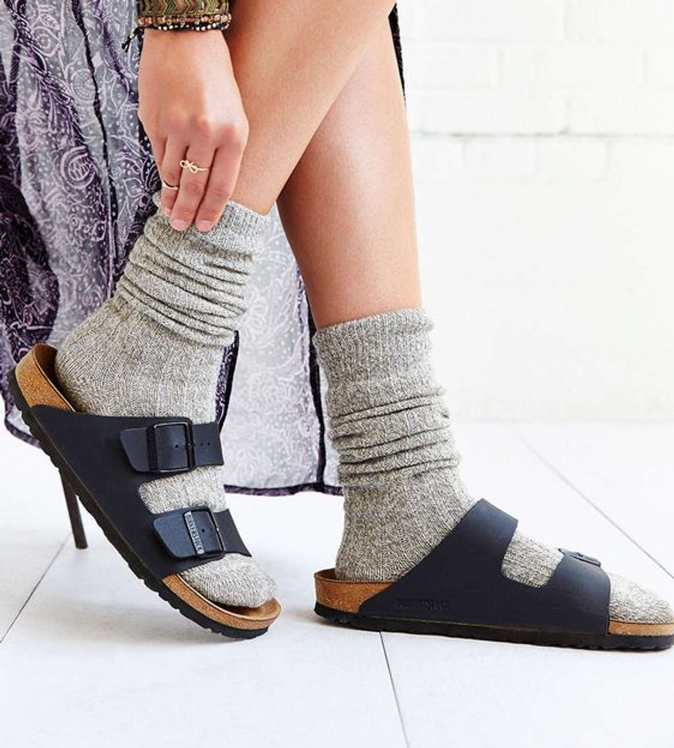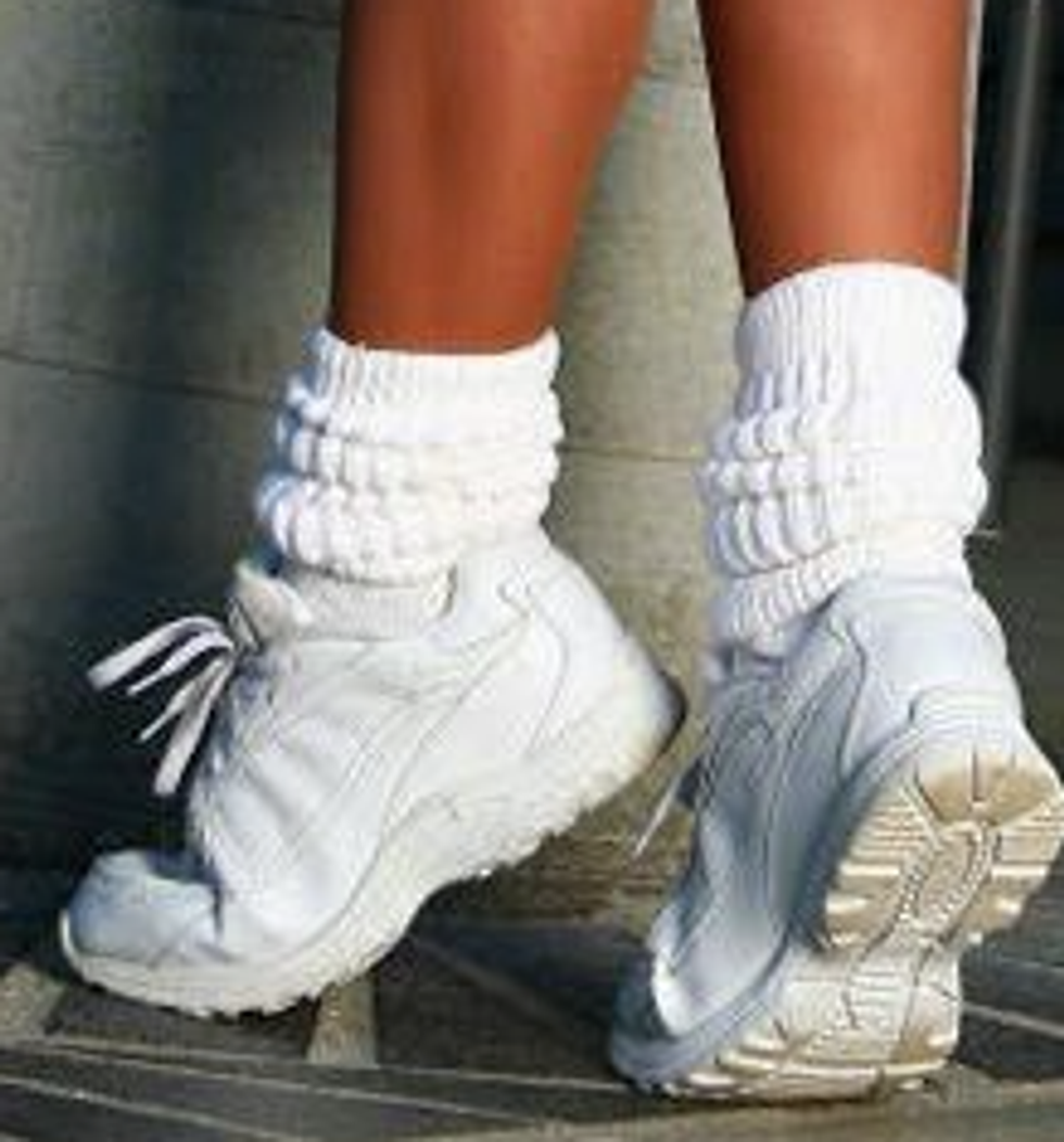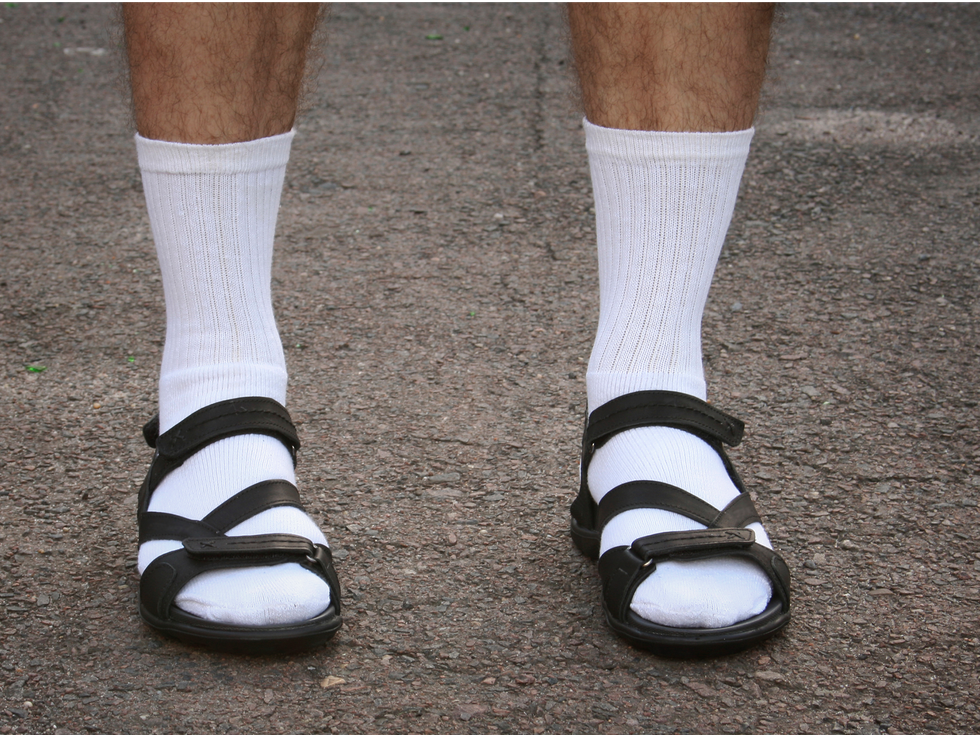 Tube socks, and any socks, should be worn at all times. Spruce up your sporty sneakers by having socks peak out. Wearing sandals in October? Keep those phalanges warm with some socks. Even better is the "socks with heels" look. It can make formal footwear look chill faster than you can say "granola".