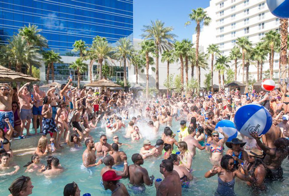 This is definitely my favorite part of staying in Vegas. The weather in the spring and summer is 70+ degrees. There is nothing more awesome than lounging poolside in the sun amongst some of the most beautiful looking people! Most pools also have pool parties that happen on the weekends. Beware, these come with a huge price. Last year I went to Wet Republic and day of show for Calvin Harris was $50 for girls and $100 for guys. They don't let you bring in alcohol, and the only drinks they served were in 36oz plastic cups for $40. Yes, you heard me. One huge drink for $40. You better believe I kept that cup.