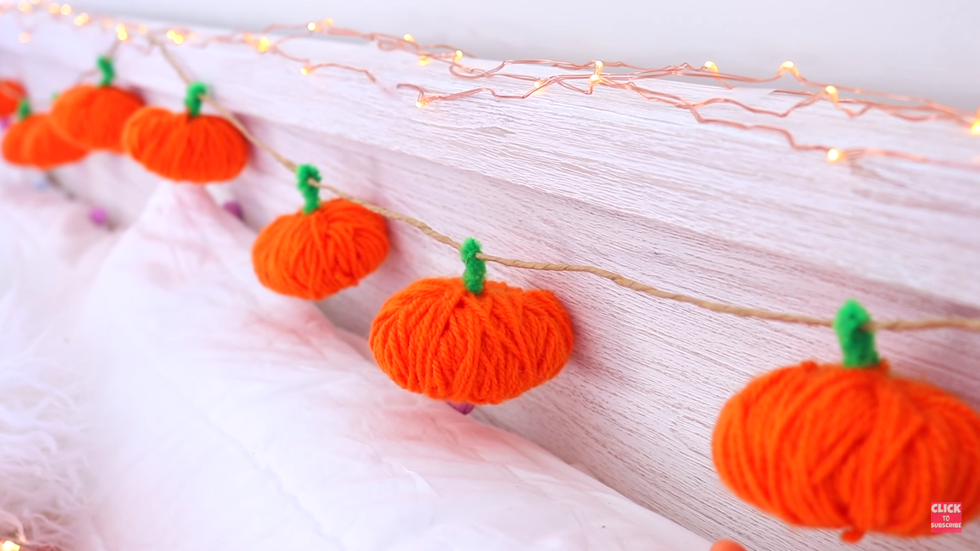 Keeping with the pumpkin theme, this pumpkin garland is easy and fun to make. All you need is yarn, craft wire and some twine and you are good to go! Click on the picture to watch how to make this.
