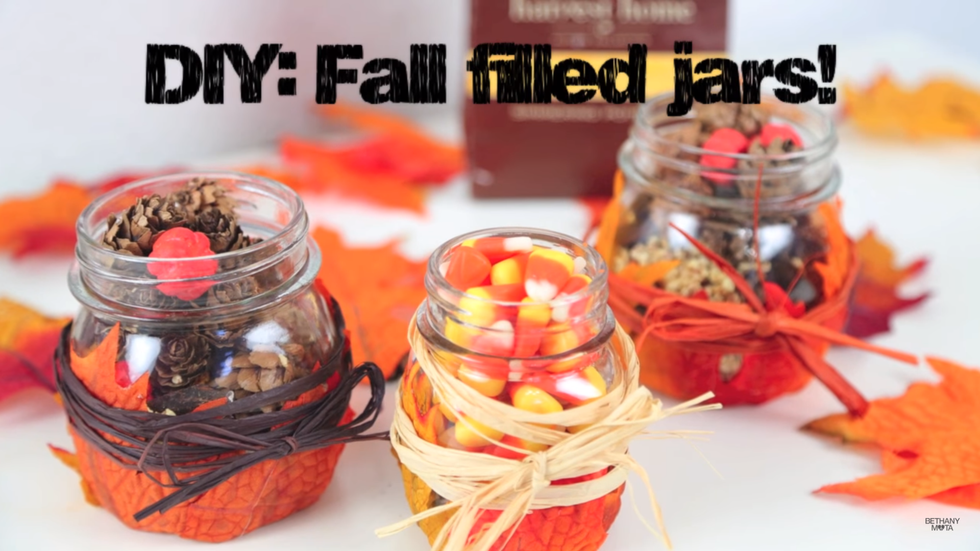 What's super fun about these jars is that you can fill them with anything you want. Obviously I would choose candy, but you can put anything in them, even a candle! Decorate the jars how you would like and just like that, you now have Tumblr-worthy fall decor.