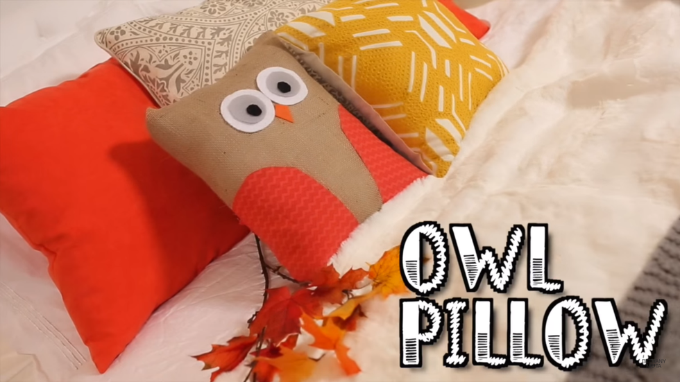 If you are feeling super creative, you can make this cute owl pillow. Take a pillow and either felt or use any material you would like, cut out the shapes you want (you don't have to make an owl), and hot glue them them to the pillow. It's a fun craft to make and doesn't take long at all!