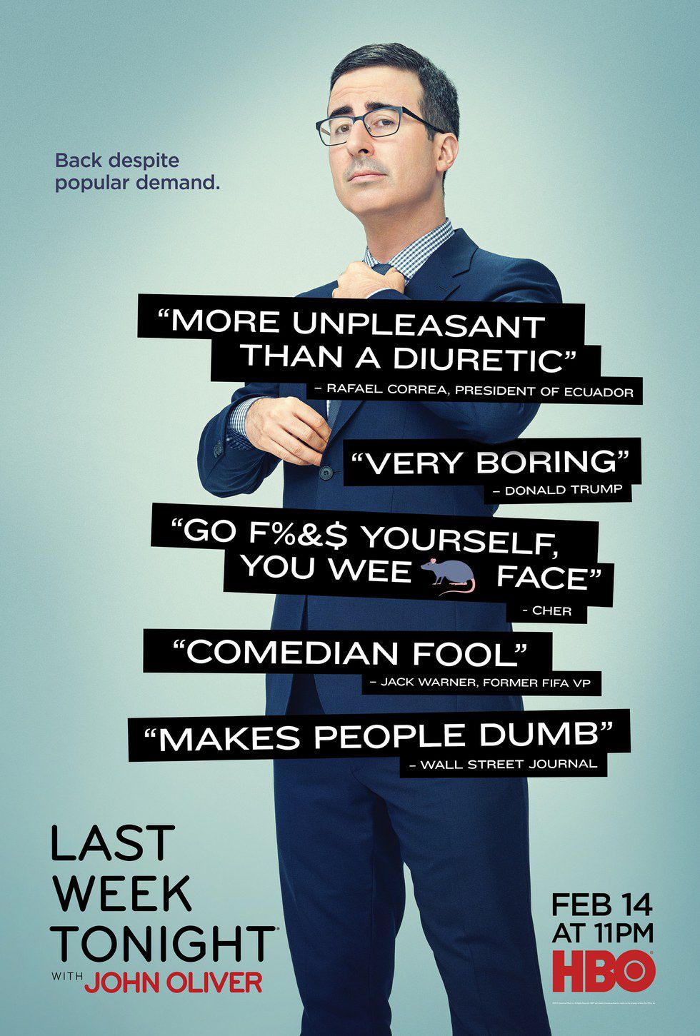 Growing up, when I saw John Oliver make a lovely appearance on "The Daily Show with Jon Stewart", I always told my dad how he should have his own show. Dreams really do come true. Not only does he have his own show on HBO, but the network uploads the episodes to Youtube and Facebook weekly. And just to put icing on this sweet delicious cake, it really the most interesting way to get caught up with current events.