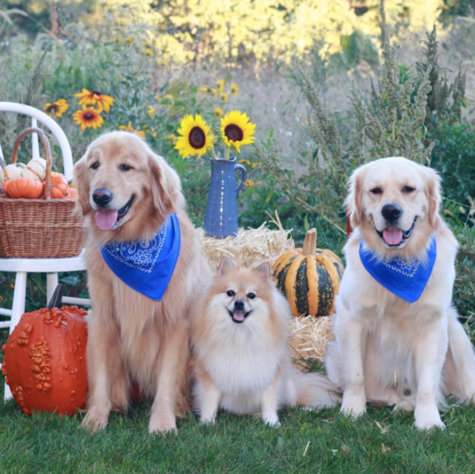 An account documenting the glorious lives of Golden Retrievers Finn, Teddy ,and their Pomeranian sibling Lina.