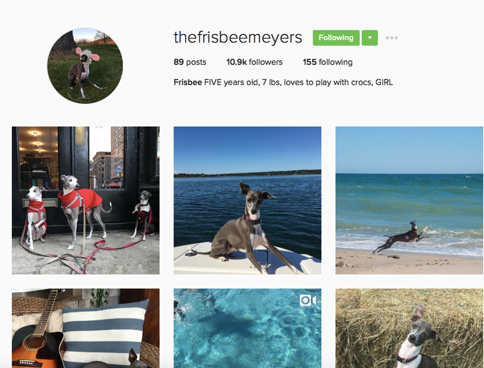 While Frisbee is quite famous herself, boasting 10.9 thousand followers on Insta, this adorable Italian greyhound is most well known for her famous dad, Seth Meyers. Frisbee is frequently mentioned on segments in Late Night with Seth Meyers as well as her father’s 70 questions interview with Vogue. Frisbee has recently become an older sister, with the birth of her brother, Ashe Olson Meyers, in March.