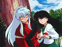 GiphyKagome, first of all, is such a badass female. She frees Inuyasha and repeatedly puts up with his crap because she's got shit to do and she needs him to do--not to mention she's in love with him. They would do absolutely anything for each other, including time travel, and that to me is just lovely.