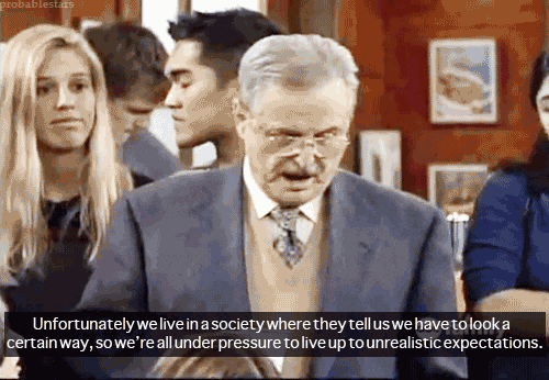 3. Unfortunately, we live in a society where they tell us we have to look a certain way, so we're all under pressure to live up to unrealistic expectations