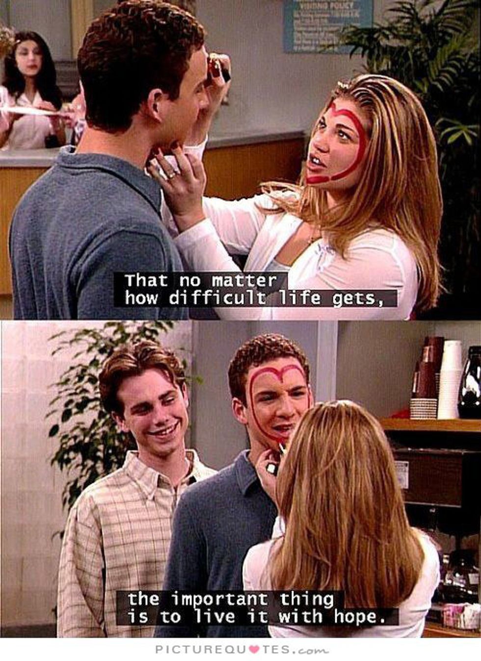 Sixteen years ago, we said goodbye to Cory, Topanga, Mr. Feeney and the rest of the "Boy Meets World" Cast. As of 2014, we have "Girl Meets World," which is arguably a well-done show in its own right, but could never replace the ABC original. "Boy Meets World" was not just light-hearted entertainment, a show filled with silly jokes, but taught us many things about friendship, love and life. Much can be taken away from this beloved series, as proven by the quotes below.