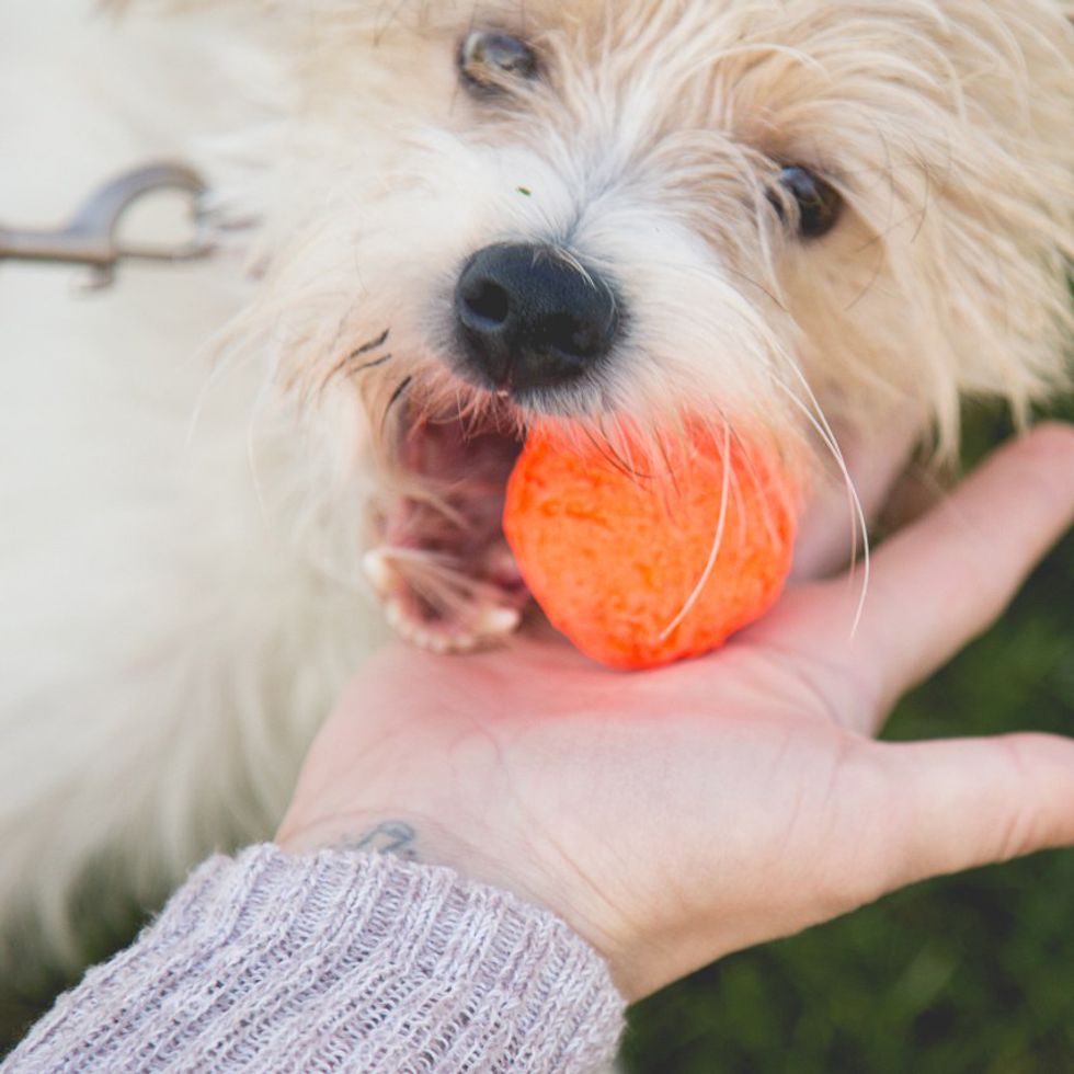 The Wunderball is a great toy for all dogs because the irregular surface on it is great for their teeth, and when it bounces, it goes everywhere making it a fun time for dogs to chase after.