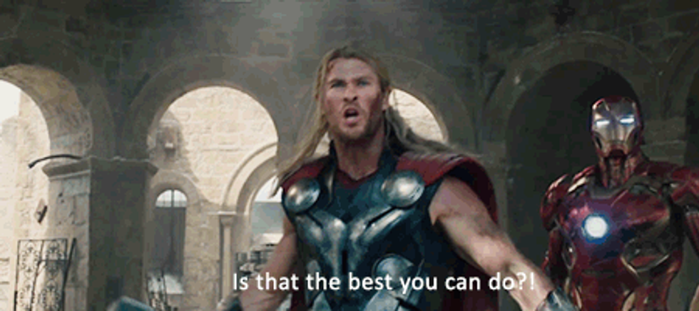 Obviously this line, or some version of it, is meant to be provocative towards another character, but it is such a one dimensional line. It doesn’t make the character unique or appear to be all that clever because every superhero has used that line before. There’s got to be other provocative dialog for a protagonist or antagonist to say to another character.