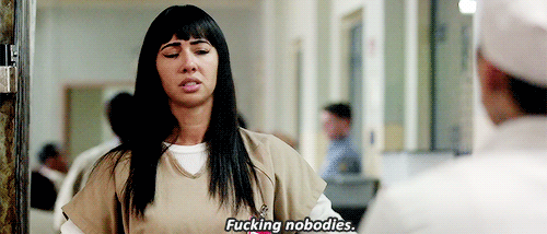 This should really just be the Pennsatucky section. To continue to see her abusive relationship with that dick guard and end it on a happy note with them living together is so sickening. And we’re really gonna have Maria turn out to be a heartless person with no loyalty to even her own tribe? The eye rollness factor of this entire season can be summed up in two words: Litchfield Idol.